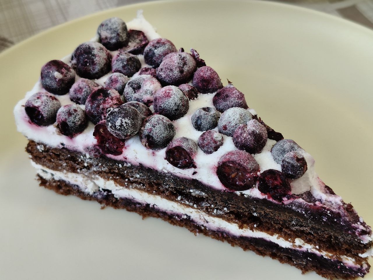 Торт большой и очень сытный, почти нет сладости,интересное сочетание крема смородины и шоколадного биисквита.